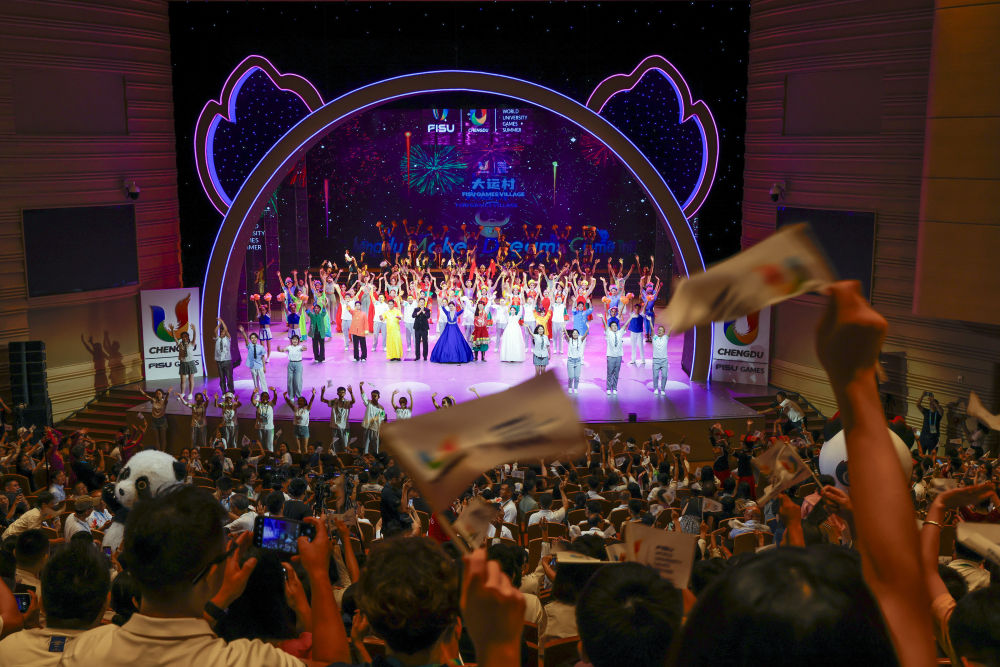 成都大運(yùn)村以“建改結(jié)合”方式全面融入成都大學(xué),該校校園在大運(yùn)會(huì)期間成為來自世界各地學(xué)生運(yùn)動(dòng)員的家。作為此次系列主題晚會(huì)的最后一場(chǎng),《成就夢(mèng)想》也是唯一一個(gè)全部由成都大學(xué)師生演出的主題晚會(huì)。