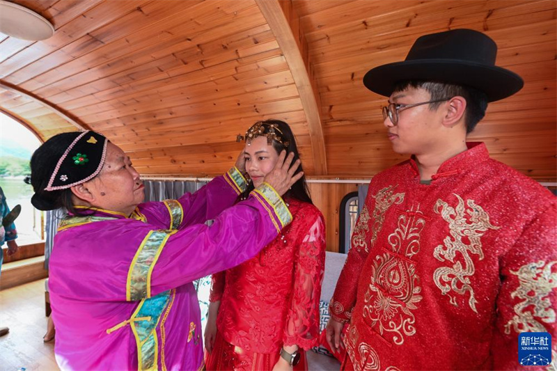 8月19日,游客在觀看三都鎮(zhèn)三都漁村水上婚禮傳統(tǒng)民俗表演。