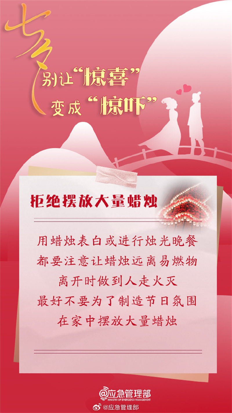 你打算怎么過七夕呢?燭光晚餐、蠟燭表白、燃放煙花……不論如何,在享受浪漫的同時(shí),千萬別忘了消防安全~快和你的愛人一起了解吧↓↓