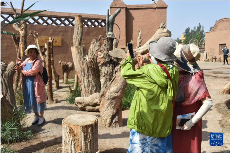 8月30日,游客在位于新疆吐魯番市的坎兒井樂(lè)園景區(qū)拍照留念。