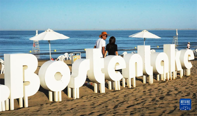 8月31日,游客在新疆博斯騰湖大河口景區(qū)游玩。