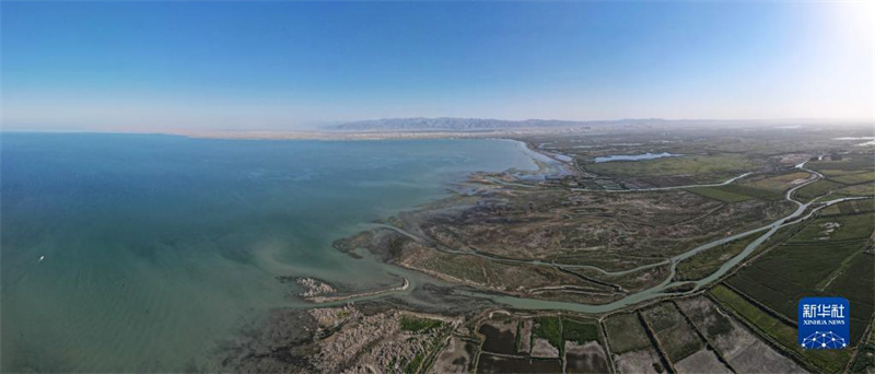 開都河匯入新疆博斯騰湖(8月31日攝,無人機(jī)全景照片)。