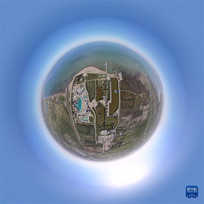 8月31日拍攝的新疆博斯騰湖大河口景區(qū)(無人機(jī)全景照片)。