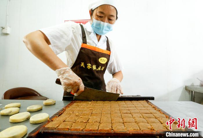 9月19日,臨近中秋,在安徽省黃山市徽州區(qū)潛口鎮(zhèn)澄塘村,傳統(tǒng)火腿月餅進(jìn)入產(chǎn)銷(xiāo)旺季。制餅手藝人經(jīng)過(guò)和油面、扯面團(tuán)、包油酥、包餡料、烤制等純手工工序,制成皮酥餡飽的火腿“土月餅”,深受食客的喜愛(ài)。