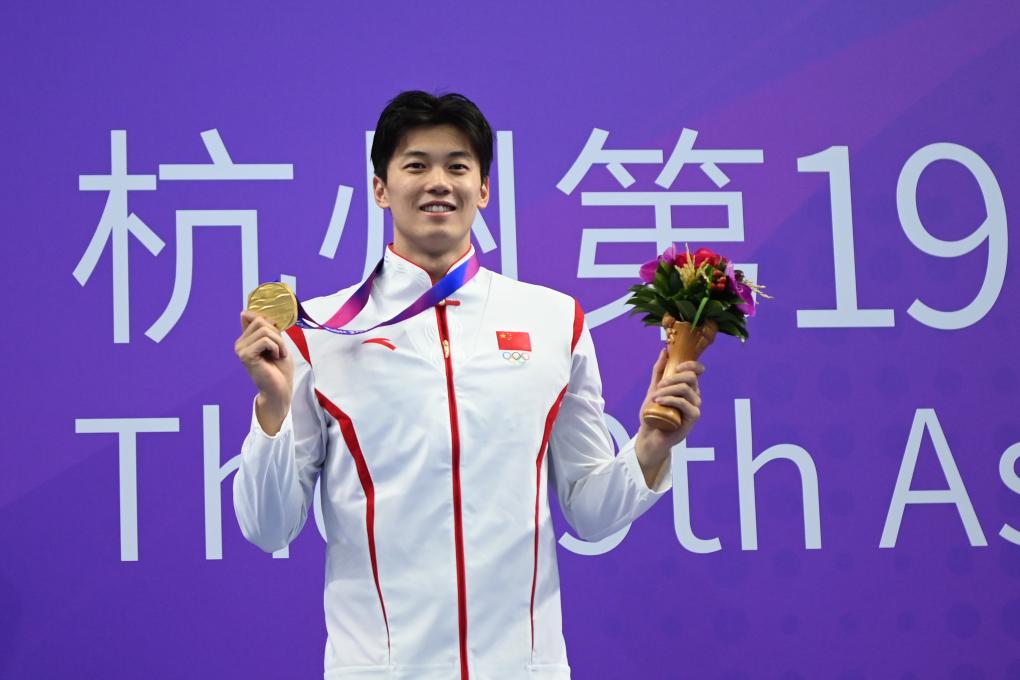 9月24日,中國(guó)選手汪順在頒獎(jiǎng)儀式上。新華社記者 黃宗治 攝