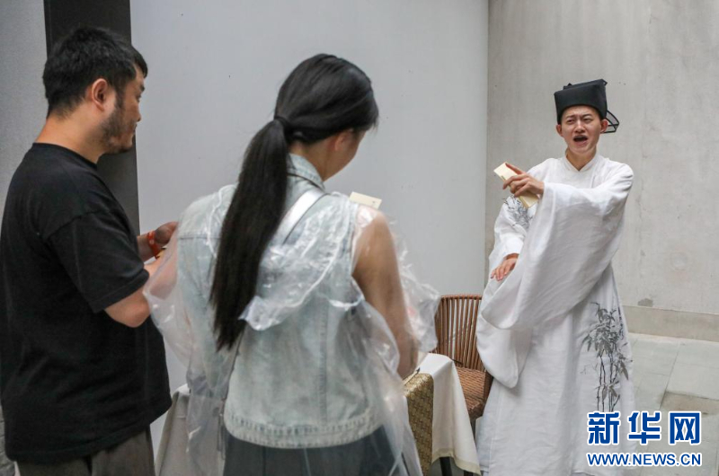 游客在今潮8弄體驗(yàn)原創(chuàng)沉浸式國(guó)風(fēng)劇情游戲《佳期如夢(mèng)》。