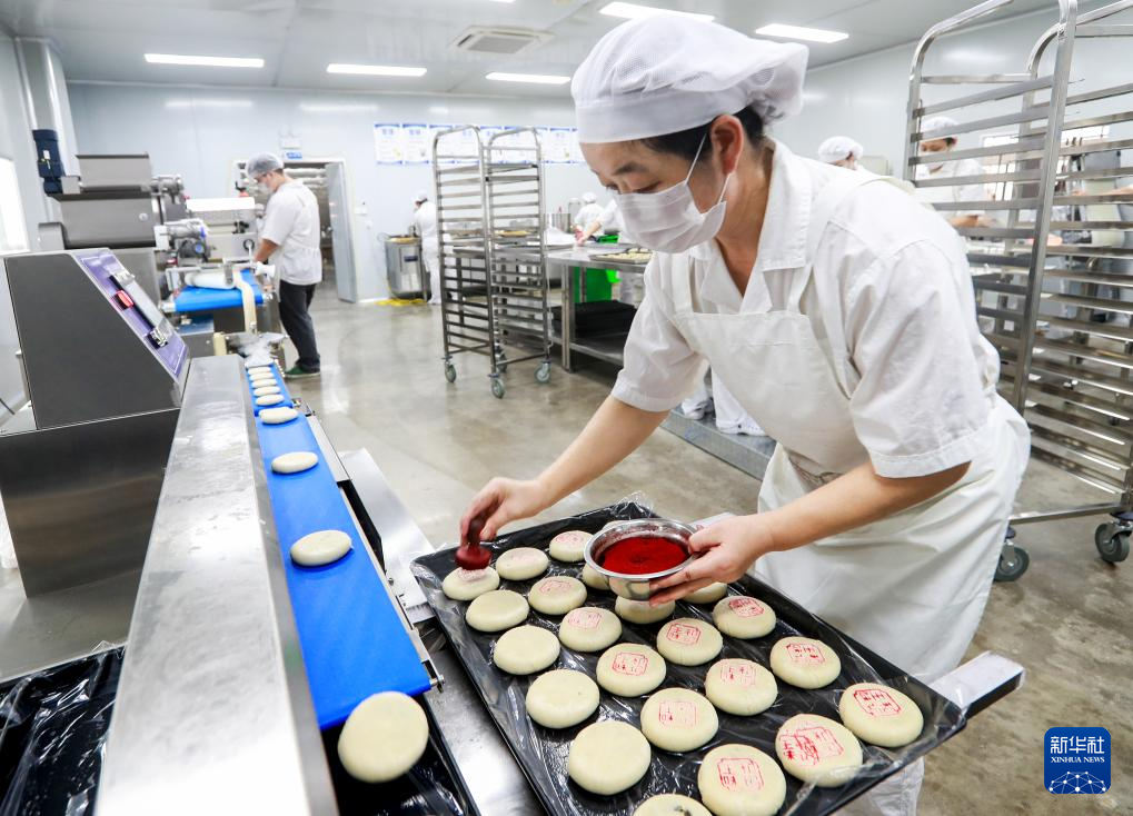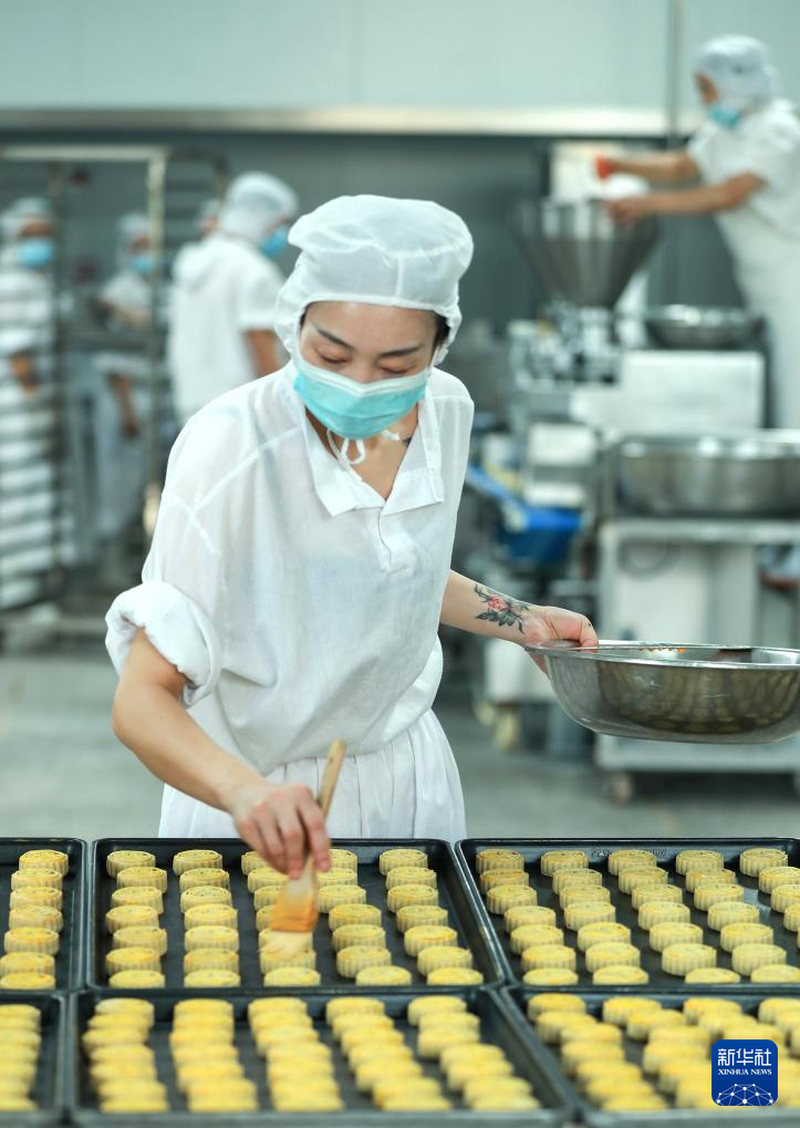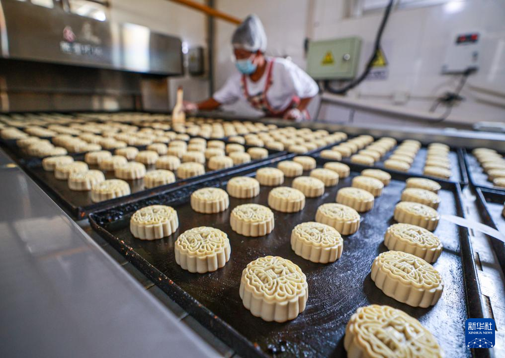 中秋節(jié)臨近,各地月餅加工企業(yè)忙著生產(chǎn)月餅,供應(yīng)節(jié)日市場(chǎng)。