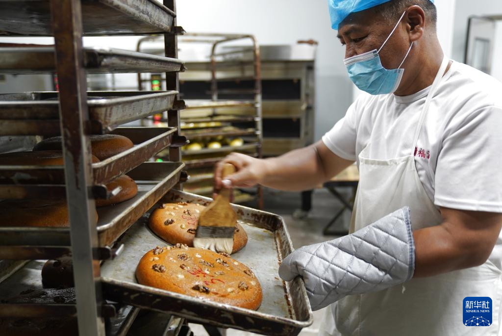 9月20日,在云南省馬關(guān)縣一家食品加工企業(yè),工人制作傳統(tǒng)月餅。