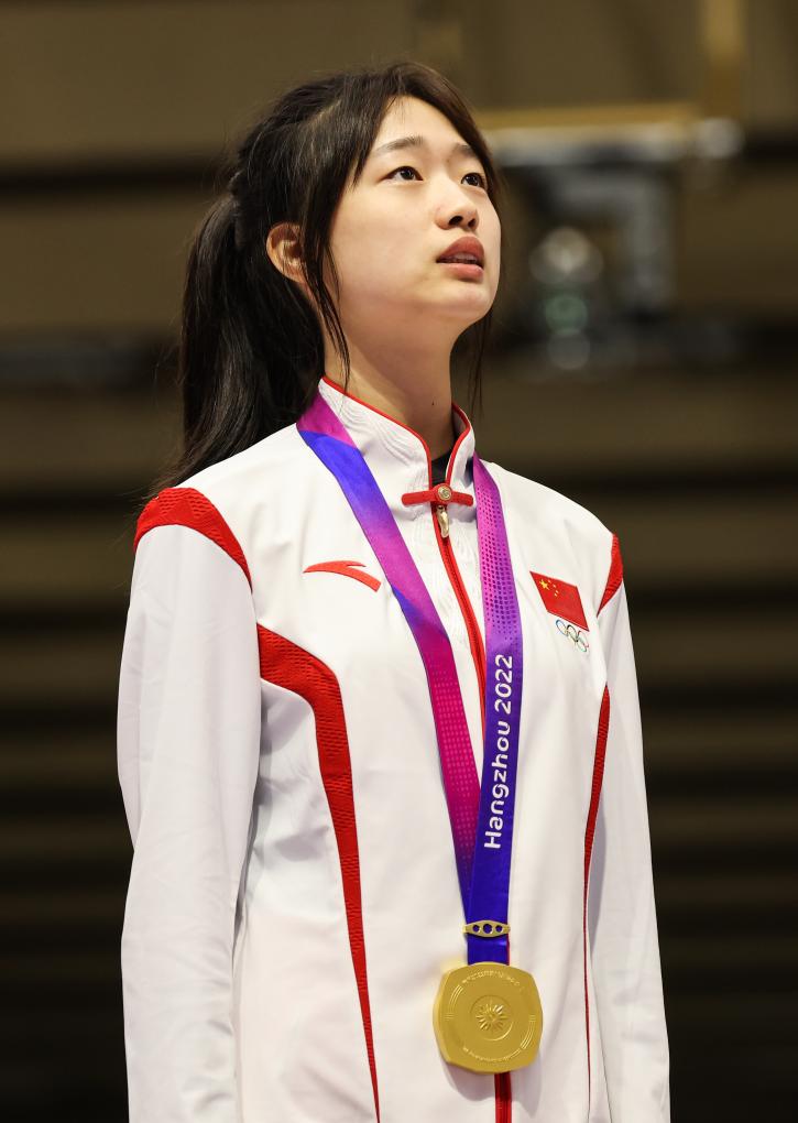 9月24日,冠軍黃雨婷在頒獎儀式上。新華社記者 單宇琦 攝