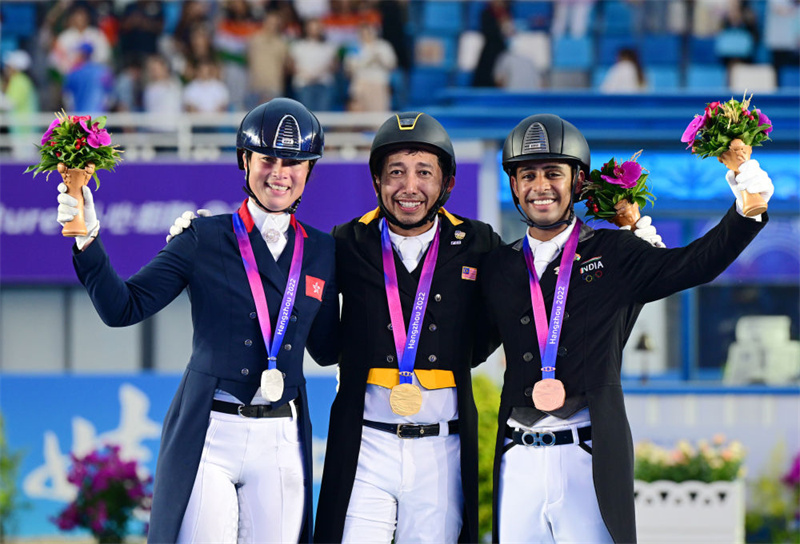 來自馬來西亞的安巴克在杭州亞運(yùn)會(huì)馬術(shù)盛裝舞步項(xiàng)目個(gè)人賽上奪得金牌。而這一刻,他等了足足25年。