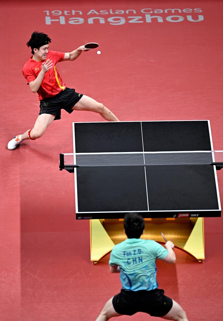 第四局,樊振東以11:7獲勝,雙方大比分戰(zhàn)成2:2。第五局,王楚欽打得更加積極主動,以11:4獲勝。第六局,背水一戰(zhàn)的樊振東在5:5后連續(xù)得分,最終以11:7獲勝,雙方戰(zhàn)至3:3。決勝局,王楚欽在7:7后連得3分,率先獲得賽點,并最終以11:8獲勝,首次贏得亞運會男單冠軍。