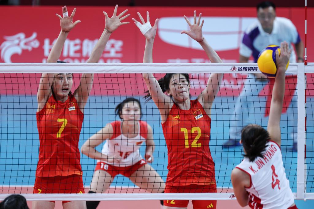 新華社杭州10月2日電(記者盧星吉、楊愷、崔力)杭州亞運(yùn)會女排小組賽2日結(jié)束五場爭奪后產(chǎn)生全部八強(qiáng)隊(duì)伍,中國女排直落三局完勝朝鮮隊(duì),晉級八強(qiáng)。