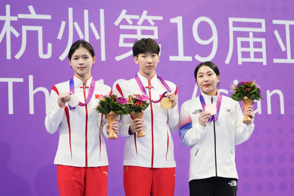 新華社杭州10月2日電(記者夏亮、周欣、李嘉)中國跳水隊在本屆亞運會上的“金牌收割”仍在繼續(xù)。在2日進(jìn)行的男、女1米板決賽中,中國隊分別包攬冠亞軍。