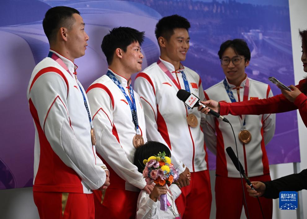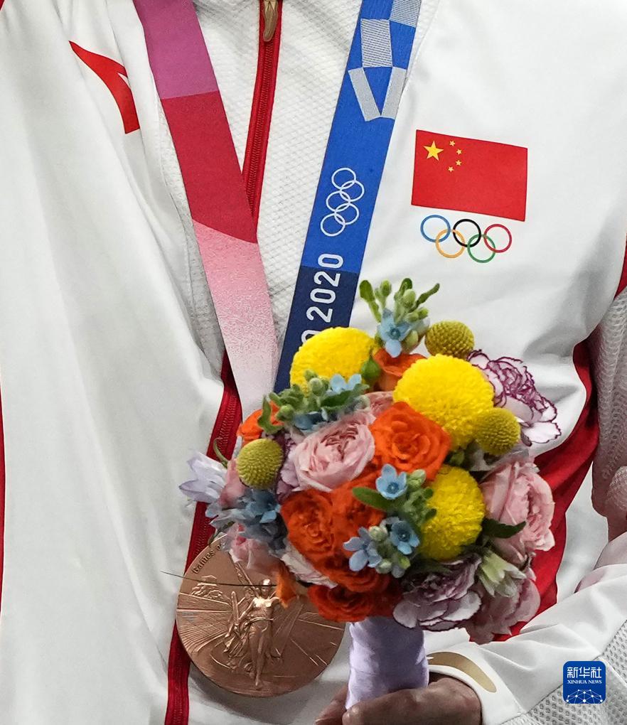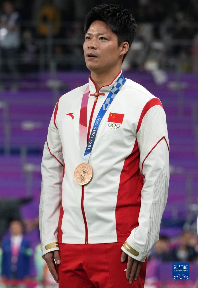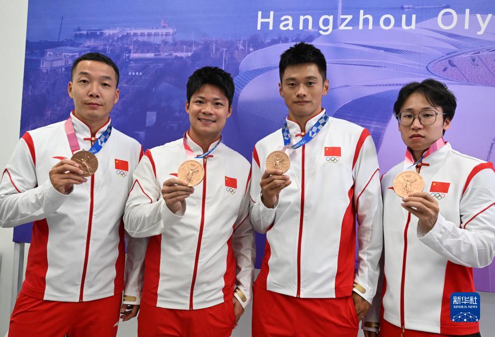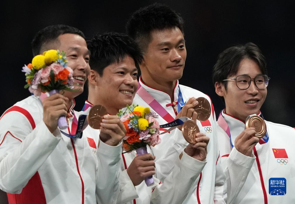這是湯星強(qiáng)、謝震業(yè)、蘇炳添、吳智強(qiáng)遞補(bǔ)獲得的東京奧運(yùn)會(huì)男子4X100米接力銅牌(10月4日攝)。