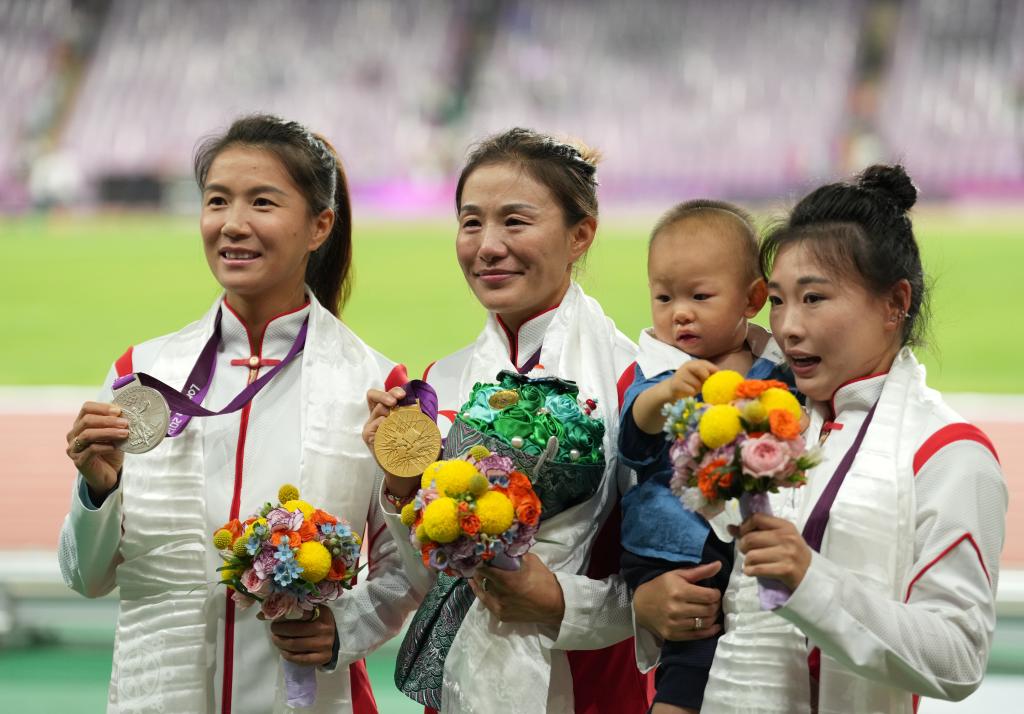 新華社杭州10月4日電(記者王浩明、吳俊寬、李典、陳晨)杭州奧林匹克體育中心體育場(chǎng),萬(wàn)人矚目,切陽(yáng)什姐登上領(lǐng)獎(jiǎng)臺(tái),當(dāng)國(guó)歌奏響,她再也抑制不住,淚水奪眶而出。