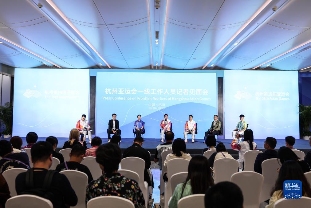 當日,杭州亞運會一線工作人員記者見面會在杭州主媒體中心舉行。