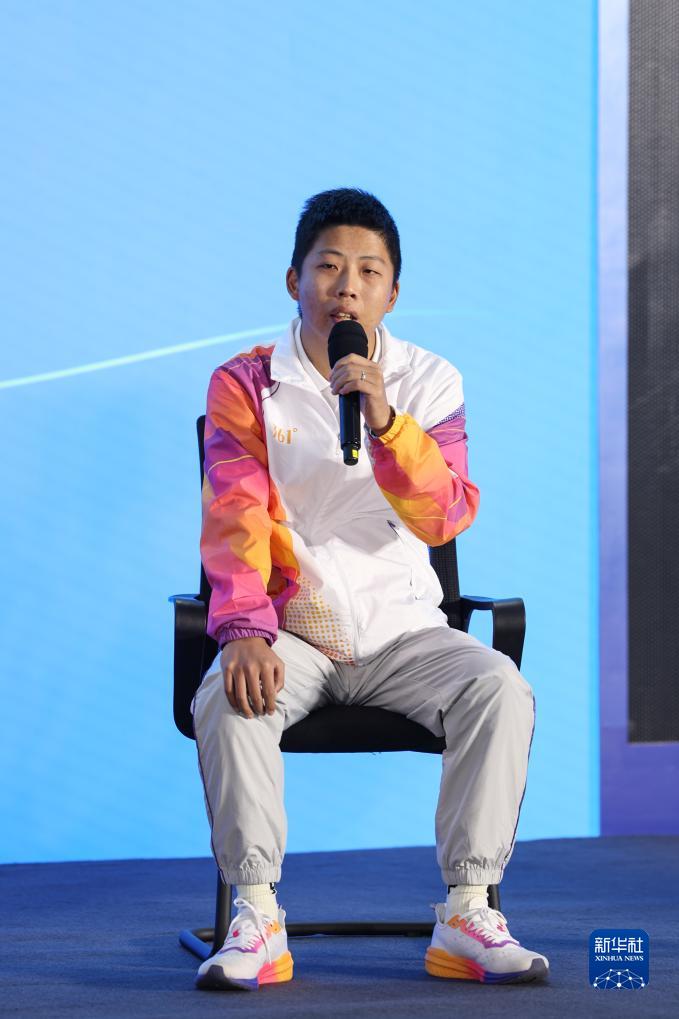 10月7日,中國日報文教體育部、杭州亞運英文官方會刊記者石甫天在見面會現(xiàn)場發(fā)言。