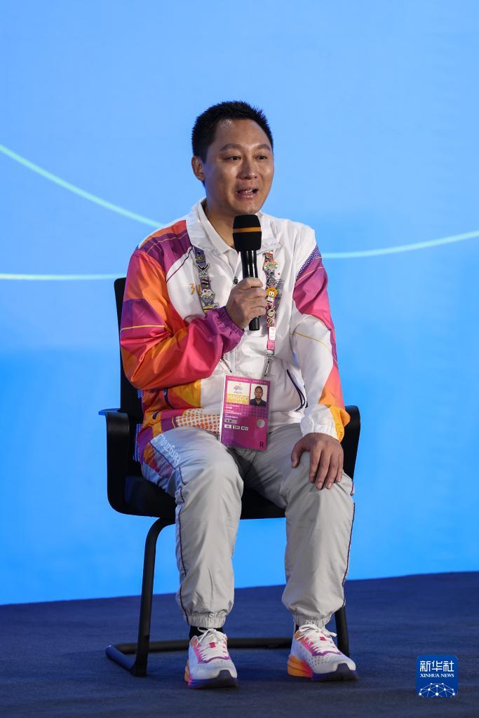 10月7日,杭州亞運會運動員村餐飲主管胡傳剛在見面會現(xiàn)場發(fā)言。