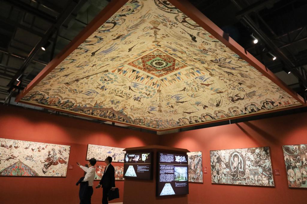9月6日,與會(huì)嘉賓在第六屆絲綢之路(敦煌)國(guó)際文化博覽會(huì)上參觀敦煌文化主題展。新華社記者 馬希平 攝