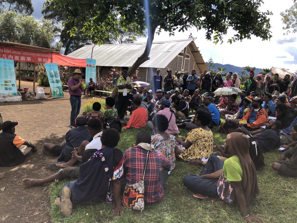 中國專家在巴布亞新幾內亞東高地省中國援助巴新菌草和旱稻技術項目第9期培訓班上授課(2020年12月15日攝)。新華社發(fā)