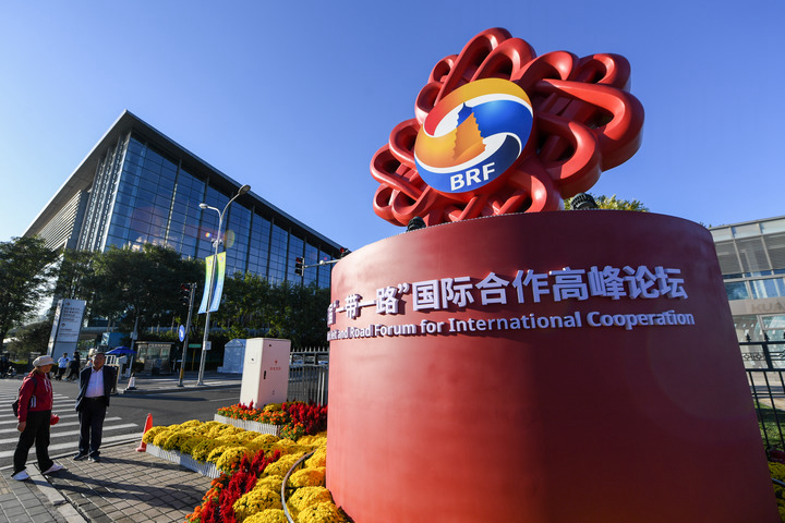 10月14日在北京國(guó)家會(huì)議中心附近拍攝的第三屆“一帶一路”國(guó)際合作高峰論壇景觀布置。新華社記者 鞠煥宗 攝