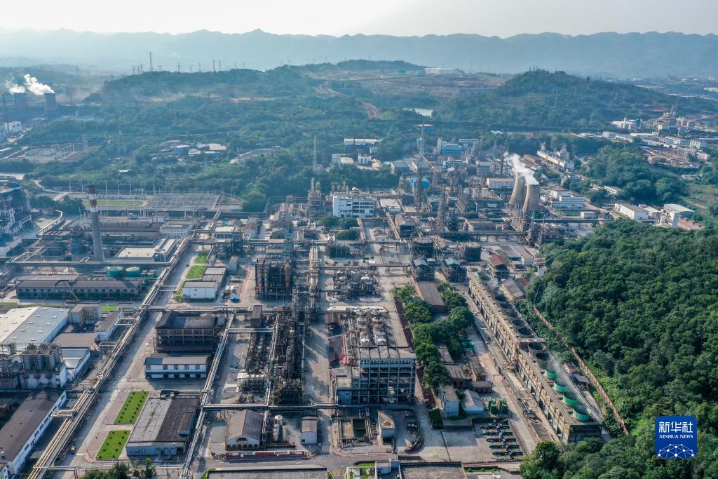 這是10月17日拍攝的中國石化川維化工廠區(qū)(無人機照片)。