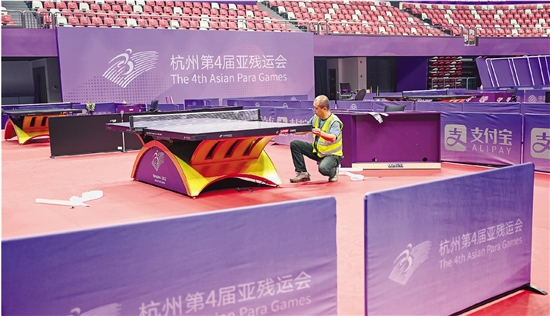 競賽場地是場館的核心。記者走訪多個競賽場館后了解到,亞殘運會競賽場地的轉(zhuǎn)換要考慮到殘疾人比賽特點,在場地和器材調(diào)試上精益求精。