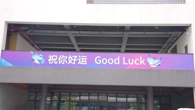 亞殘運(yùn)村居服中心門(mén)口,單腳站立的飛飛雕像翩翩起舞,成為大家格外喜愛(ài)的打卡點(diǎn)。不遠(yuǎn)處,飛飛立牌用中英雙語(yǔ)向運(yùn)動(dòng)員們發(fā)出問(wèn)候,“歡迎運(yùn)動(dòng)員回家”。居服中心內(nèi),工作人員在白板上畫(huà)出了飛飛坐著輪椅參加比賽以及在水中游泳競(jìng)速的場(chǎng)景,還有杭城的標(biāo)志性元素荷花和荷葉。賽時(shí),這些白板上將會(huì)每日更新天氣、溫馨提醒、交通信息、失物招領(lǐng)等實(shí)用信息,為運(yùn)動(dòng)員們帶來(lái)便利。