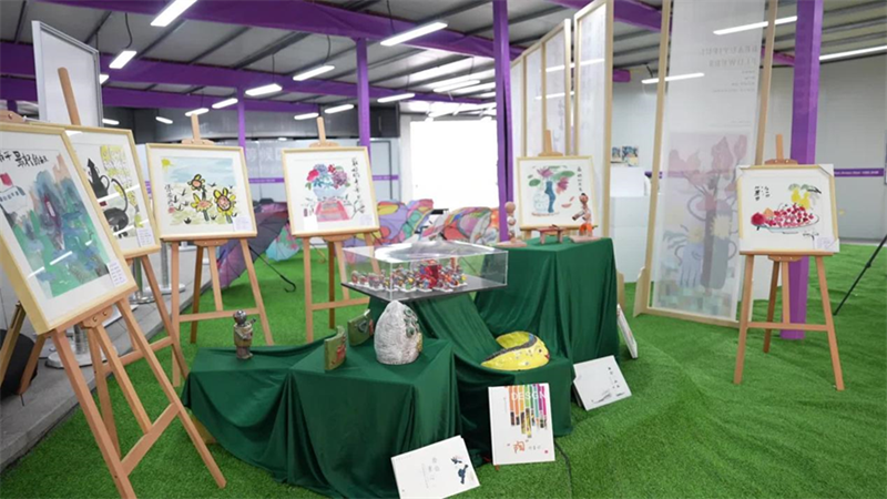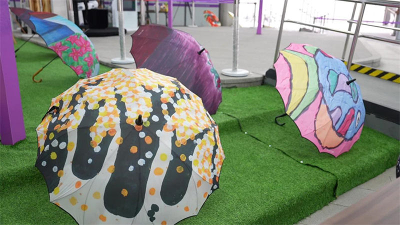 亞殘運(yùn)場(chǎng)館、中國(guó)元素、飛飛形象、杭城美景……這些畫(huà)作和手工制品內(nèi)容豐富、形態(tài)各異,有各類繪畫(huà)、傘面彩繪、盤(pán)繪、剪紙、黏土制品等等,鮮亮的色彩搭配相當(dāng)搶眼,讓人一看就心情愉悅。