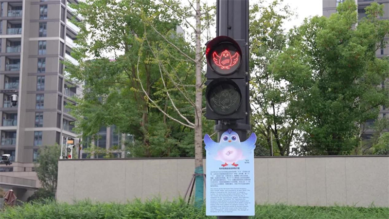 在亞殘運(yùn)村的主干道拾久街邊,曾經(jīng)火遍杭城的“三小只”造型交通信號(hào)燈,如今換上了新裝,可愛(ài)的飛飛接替了“三小只”的位置,在路口“站崗”。紅綠變化間,飛飛雙翼展開(kāi)、振翅翱翔,格外引人注目。