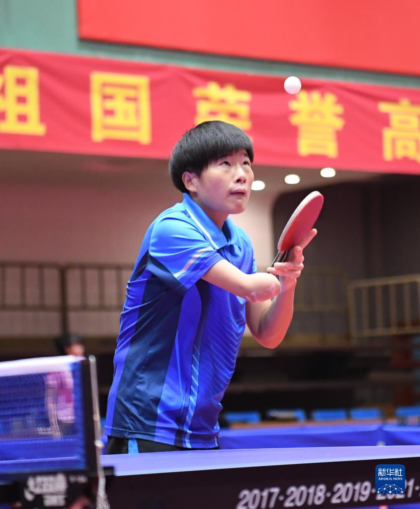 9月12日,中國(guó)殘疾人乒乓球隊(duì)運(yùn)動(dòng)員黃文娟在訓(xùn)練中。新華社記者 朱旭東 攝