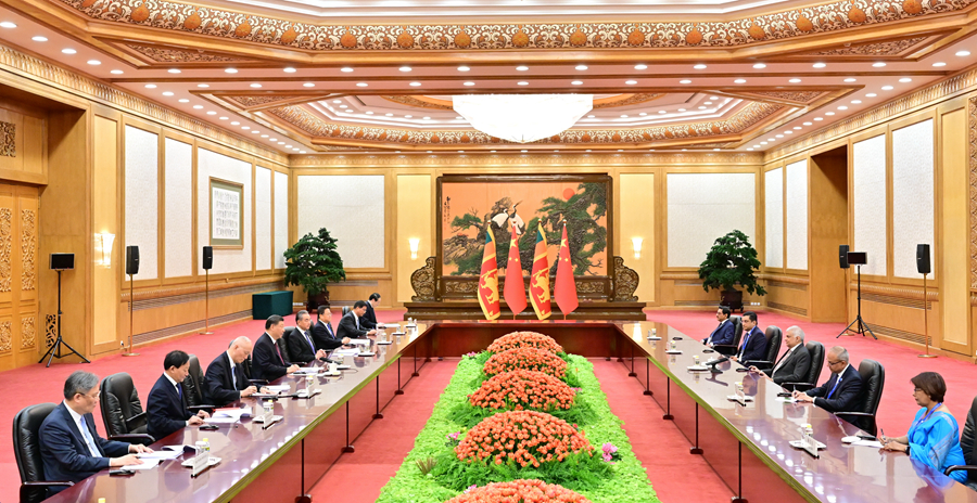 10月20日上午,國家主席習近平在北京人民大會堂會見來華出席第三屆“一帶一路”國際合作高峰論壇的斯里蘭卡總統(tǒng)維克拉馬辛哈。