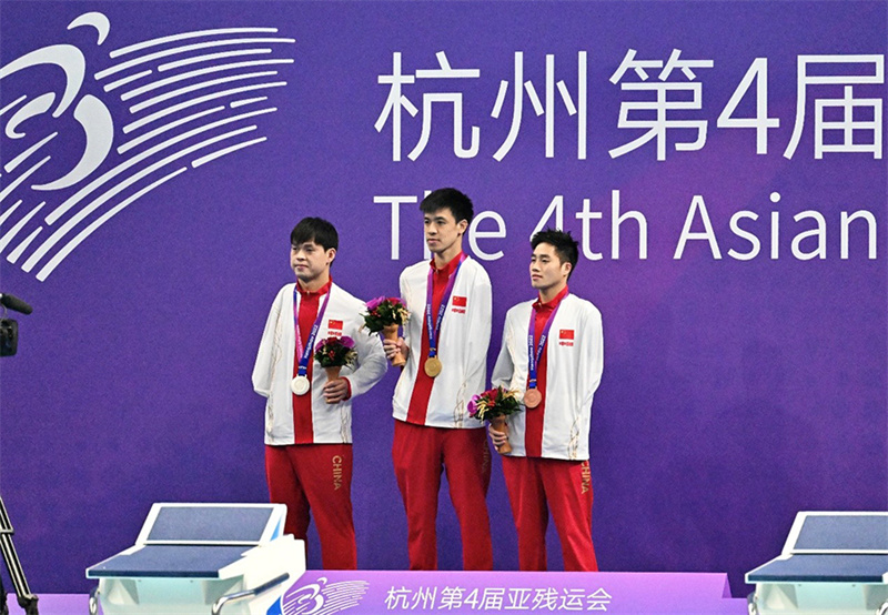 10月23日,杭州第4屆亞殘運(yùn)會開幕后的首個比賽日,杭州本土選手徐海蛟在男子400米自由泳—S8決賽和男子200米個人混合泳—SM8決賽項目中,勇奪兩枚金牌。