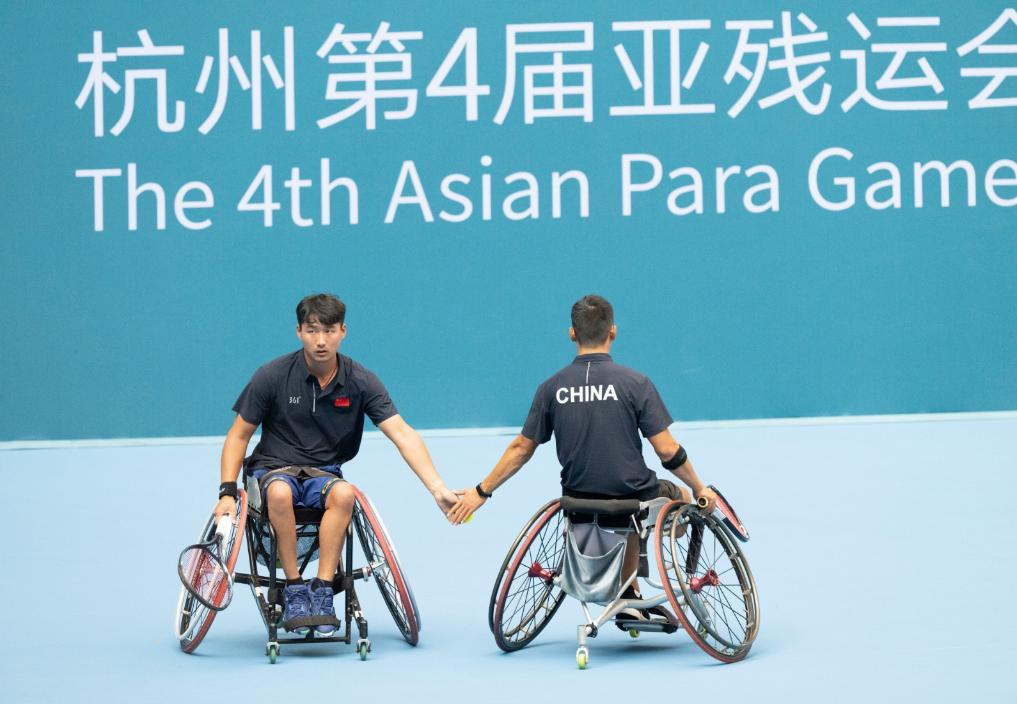 新華社杭州10月24日電(記者董意行)杭州亞殘運(yùn)會24日迎來輪椅網(wǎng)球項目第二個比賽日。六名中國隊選手全部亮相單打比賽并順利晉級下一輪,郭珞瑤/朱珍珍闖入女子雙打決賽。