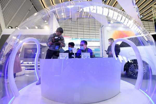 2022年11月8日,互聯(lián)網(wǎng)之光博覽會,媒體記者在拍攝體驗全場景開放式手車互聯(lián)組件