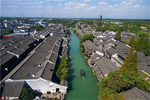 2016年10月11日,航拍浙江烏鎮(zhèn)。烏鎮(zhèn)是一個有著1300年建鎮(zhèn)史的江南水鄉(xiāng)古鎮(zhèn)。過去兩年,世界互聯(lián)網大會在這座千年古鎮(zhèn)舉行,來自全球的互聯(lián)網行業(yè)大咖及各國政要曾齊聚一堂