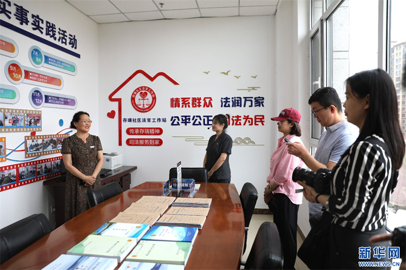 隆化縣人民法院存瑞社區(qū)法官工作站調(diào)解員林瑩(左一)向新時代“楓橋經(jīng)驗(yàn)”網(wǎng)絡(luò)主題宣傳活動河北行采訪團(tuán)成員介紹調(diào)解情況。新華網(wǎng) 高麗攝