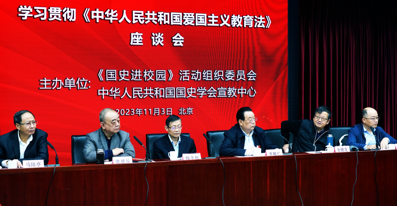 2023年10月24日第十四屆全國人大常委會(huì)第六次會(huì)議通過并頒布了《中華人民共和國愛國主義教育法》,決定自2024年1月1日起實(shí)施。為了深入學(xué)習(xí)貫徹習(xí)近平總書記致中華人民共和國國史學(xué)會(huì)成立30周年賀信精神,切實(shí)推動(dòng)愛國主義教育和國史進(jìn)校園工作的深入開展,由國史進(jìn)校園(紅色經(jīng)典進(jìn)校園)組織委員會(huì)、中華人民共和國國史學(xué)會(huì)宣傳教育中心主辦的“學(xué)習(xí)貫徹《中華人民共和國愛國主義教育法》座談會(huì)”于11月3日在京召開。