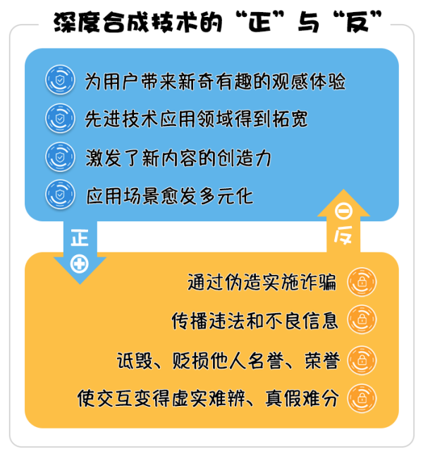 深度合成技術(shù)是一柄“雙刃劍”,其作為人工智能內(nèi)容合成技術(shù),近些年風(fēng)頭正盛。此技術(shù)正被應(yīng)用于新聞傳媒、教育、電子商務(wù)等諸多領(lǐng)域。若正確使用該技術(shù),不僅可以使應(yīng)用場景更加多元化,還可激發(fā)新的創(chuàng)造,造福社會。若惡意使用該技術(shù),則會嚴重損害人民群眾合法權(quán)益,嚴重威脅社會信息安全。