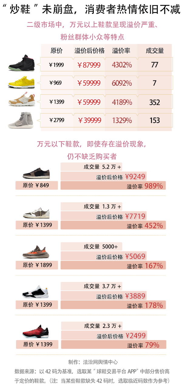 近年來,有關(guān)“炒鞋”的話題熱度不斷,一雙原本幾百塊的球鞋,可能迅速被炒至幾倍甚至幾十倍,造成這種大幅度溢價(jià)的原因在于鞋款的話題性、曝光度、稀有程度等。因“炒鞋”能夠獲取巨大利益,致使市場中出現(xiàn)了“炒鞋”黑產(chǎn)鏈條,同時(shí)也引發(fā)了輿論對“炒鞋”是否合法、溢價(jià)是否合理等話題的關(guān)注。