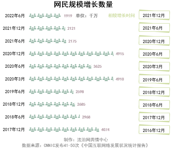 第50次《報(bào)告》顯示,2022年6月相較于2021年12月新增網(wǎng)民1919萬(wàn)人。