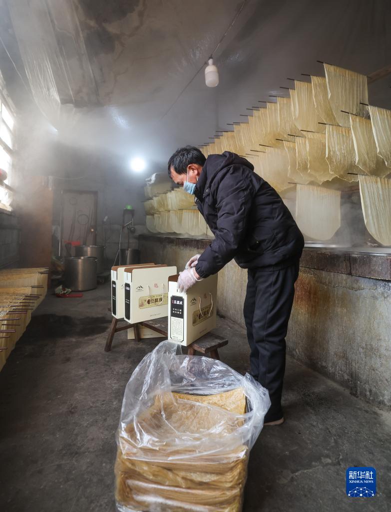 春節(jié)臨近,浙江省諸暨市安華鎮(zhèn)的傳統(tǒng)年貨——豆腐皮迎來銷售旺季。村民加緊制作豆腐皮,供應(yīng)節(jié)日市場(chǎng)。