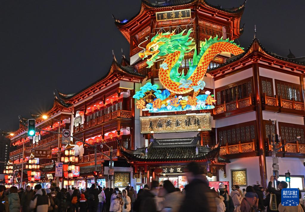 當(dāng)日,2024上海豫園民俗藝術(shù)燈會(huì)正式亮燈。今年豫園燈會(huì)續(xù)寫(xiě)“山海奇豫記”,以“海經(jīng)篇”為主題,生肖龍燈、海底世界、魚(yú)群起舞、奇幻仙境等場(chǎng)景讓游客在燈火絢爛的國(guó)風(fēng)幻境中喜迎龍年新春。
