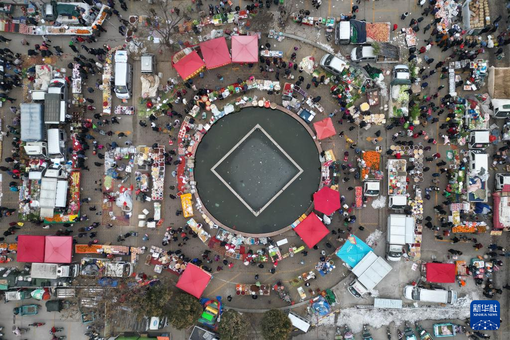 1月20日,人們在山東省濟(jì)南市二七新村南路附近的山水大集上選購年貨(無人機(jī)照片)。新華社發(fā)(郝鑫城攝)