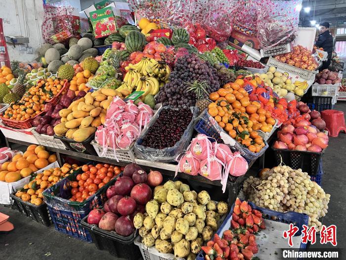 來到當地知名的博格拉農貿市場,只見各類水果早已堆滿貨架,靜待市民“置年貨”。張峰 攝