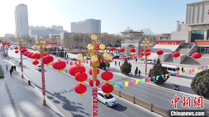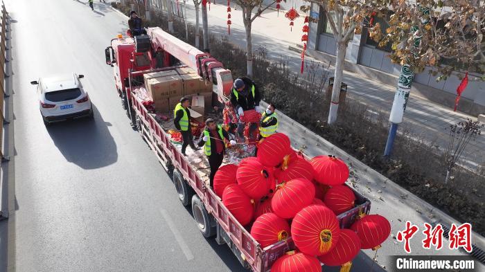 為喜迎春節(jié),營造“年味兒”,阿圖什城建局工作人員早早動工,為當地各個街道張燈結彩掛燈籠。張峰 攝