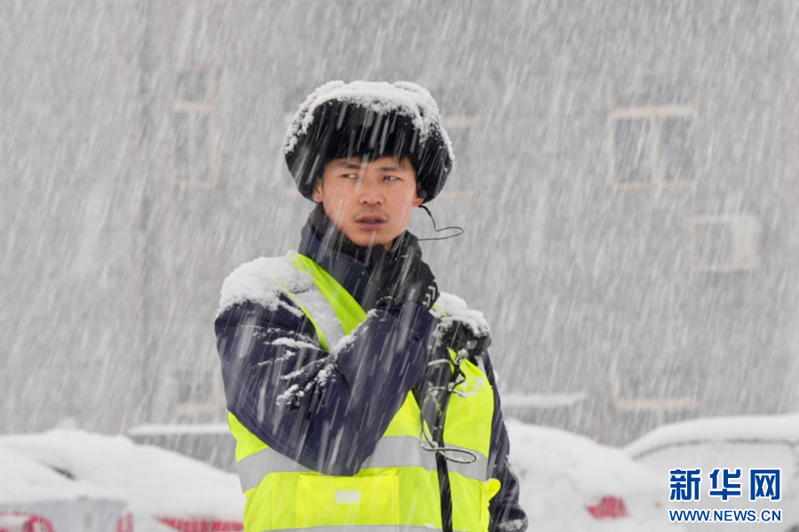 1月16日,在西安市臨潼區(qū)新豐鎮(zhèn)編組站,防護員用報話機聯(lián)系機車運行情況,為工友們守護安全。新華網(wǎng)發(fā) 喬小虎 攝