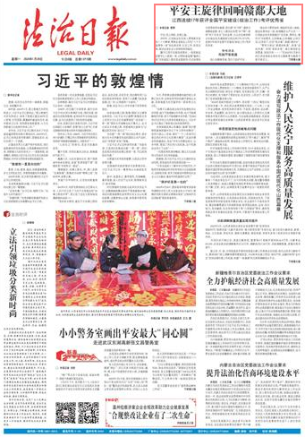 以2023年1月起施行的《江西省平安建設條例》為例,江西率先完成平安建設省級立法工作,以人民群眾的需求為導向,讓平安建設內涵不斷拓展延伸——從發(fā)案少、秩序好的“小治安”體系拓展到全方位、多層次的“大平安”格局;從過去以治安安全為中心拓展到如今的經濟、政治、文化、社會、生態(tài)等多領域安全,并用立法固化優(yōu)勢,轉化為治理效能。