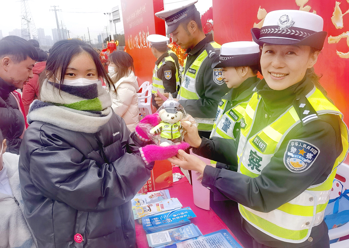 1月26日,安徽省蕪湖市公安局交警支隊(duì)鏡湖大隊(duì)開展“平安春運(yùn),幸福常伴”活動(dòng)。民警深入鄉(xiāng)村,通過向群眾發(fā)放宣傳單、面對(duì)面講解等方式,提醒群眾遵守交通法規(guī),過一個(gè)安全幸福的新春佳節(jié)。