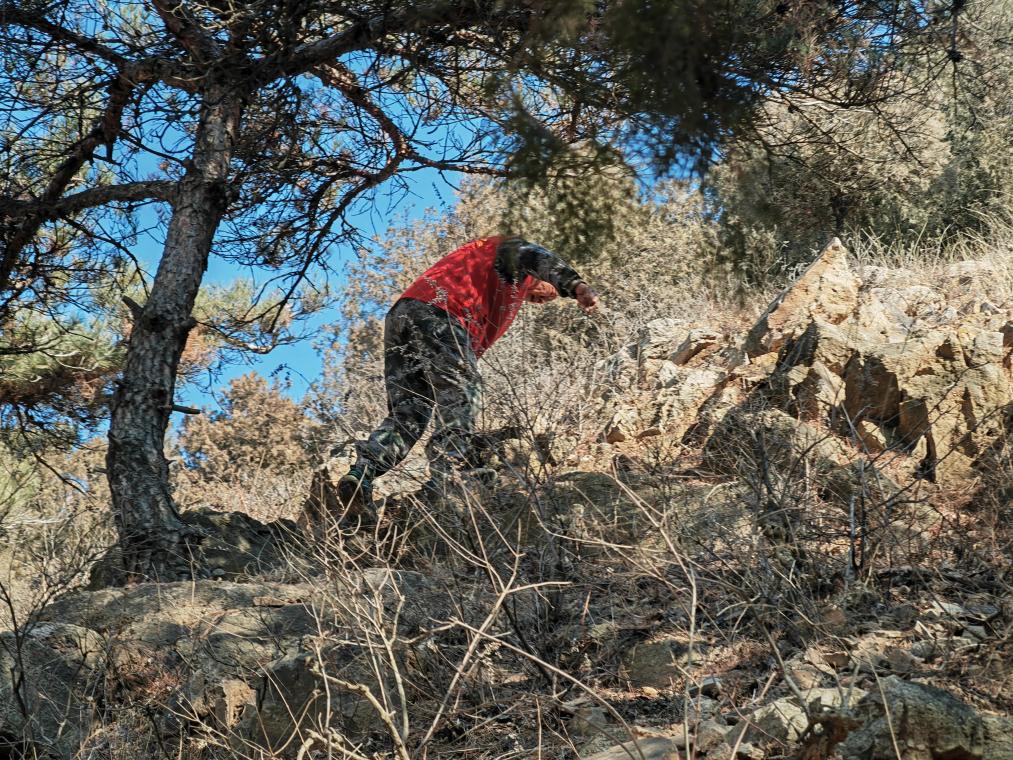 地形復雜,山路崎嶇,上山的路并不好走。涉深溝、穿荊棘,遇到一些陡坡時,還得手腳并用攀爬。